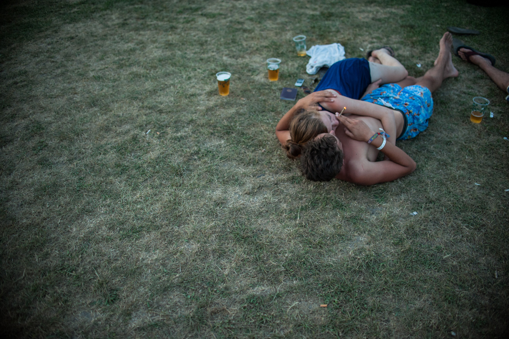 Überall weitere Zelte, noch mehr Menschen die langsam ihre Köpfe aus ihren Behausungen strecken und die Sonne in ihre leeren und doch glücklichen Seelen saugen. Das Brummen ergibt Sinn als ich die dazu gehörigen Töne höre; vorhin das hypnotisierende Gefühl war der Bass der Band gewesen. Die Band, die gerade ihre Instrumente stimmt und ihre Klänge, Stimmen und ihr Können heute noch unter Beweis stellen werden. Es ist früh und unter normalen Umständen viel zu früh um aufzustehen, doch jetzt ist es wie ein Tanz in den Wolken. Wunderbar und zugleich unheimlich.