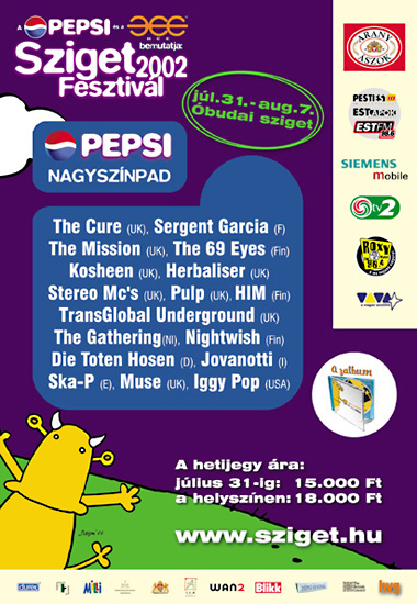 Pepsi beendete seinen Vertrag als Hauptsponsor des Festivals, das Sziget wurde somit zu einer unabhängigen Marke und feierte im Jahr 2002 außerdem die 10. Festival-Ausgabe. Mit einer Feier in friedlicher Atmosphäre, die sich immer mehr zum Markenzeichen des Sziget entwickelt hatte und 355.000 Besuchern, die von mehr als 1.000 Programmpunkten, darunter 80 internationale Stars, unterhalten wurden, zelebrierte das Sziget dieses Jubiläum. Komischerweise entstand das einzige größere Sicherheitsproblem während des Festivals im Backstage-Bereich, als es eine kleinere Ausschreitung zwischen den Bandmitgliedern von Kosheen und dem Bass-Spieler von Iggy Pop gab, die aber schnell von den Sicherheitskräften unterbunden wurde. Mit Péter Medgyessy, dem ungarischen Premierminister stattete zum ersten Mal in der Geschichte des Sziget ein Staatsoberhaupt dem Festival einen Besuch ab und nutze so die PR-Möglichkeiten, die das Sziget bietet – zeigte damit aber auch, dass das Sziget zu einem ernstzunehmenden Spieler und der größten Attraktion des Landes geworden war.