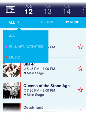 Browse das Programm nach Tag, Zeit, Venue, oder in alphabetischer Reihenfolge. Such nach den Namen der Künstler um zu sehen, wo sie in zwei Sekunden spielen!